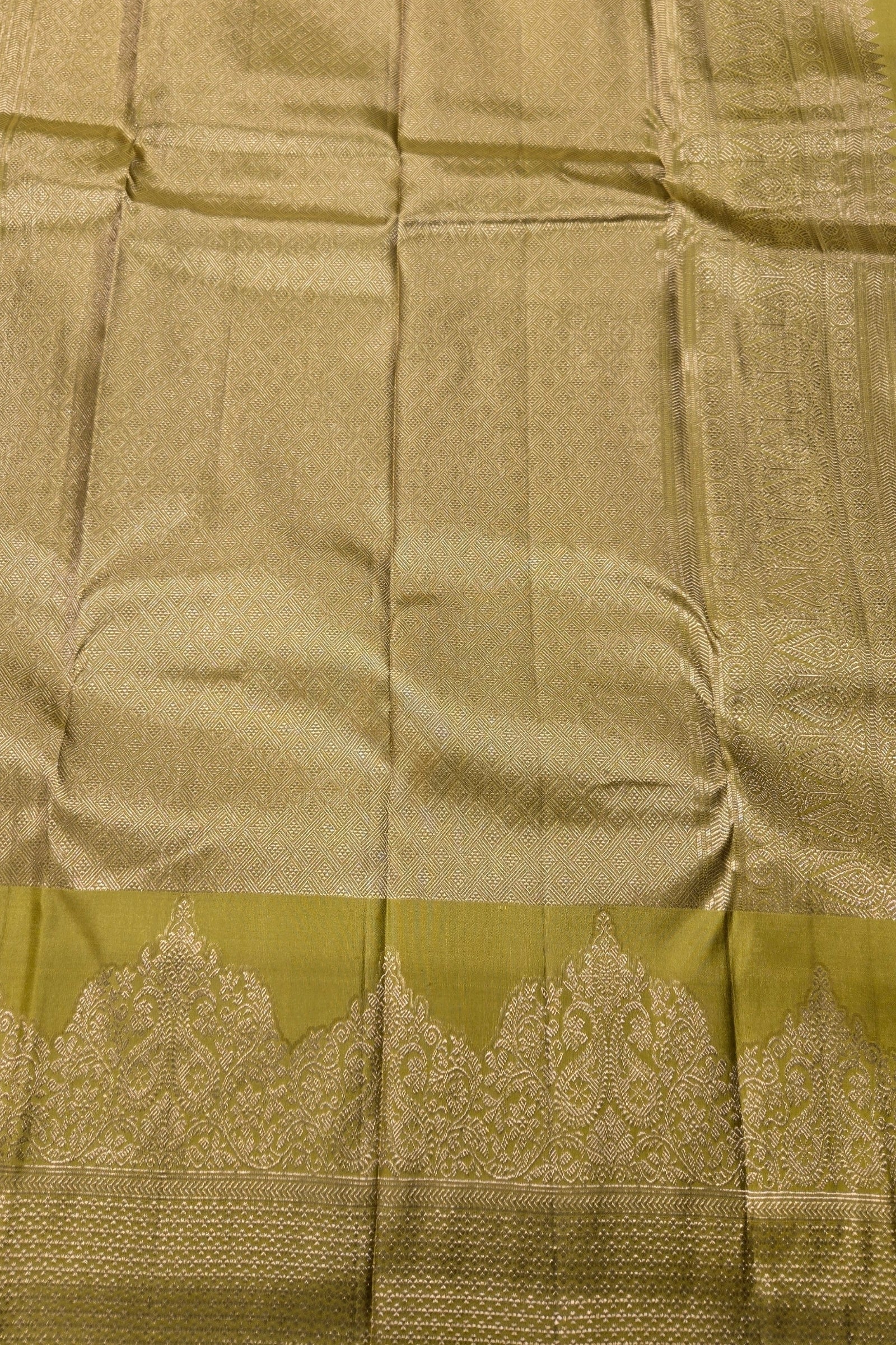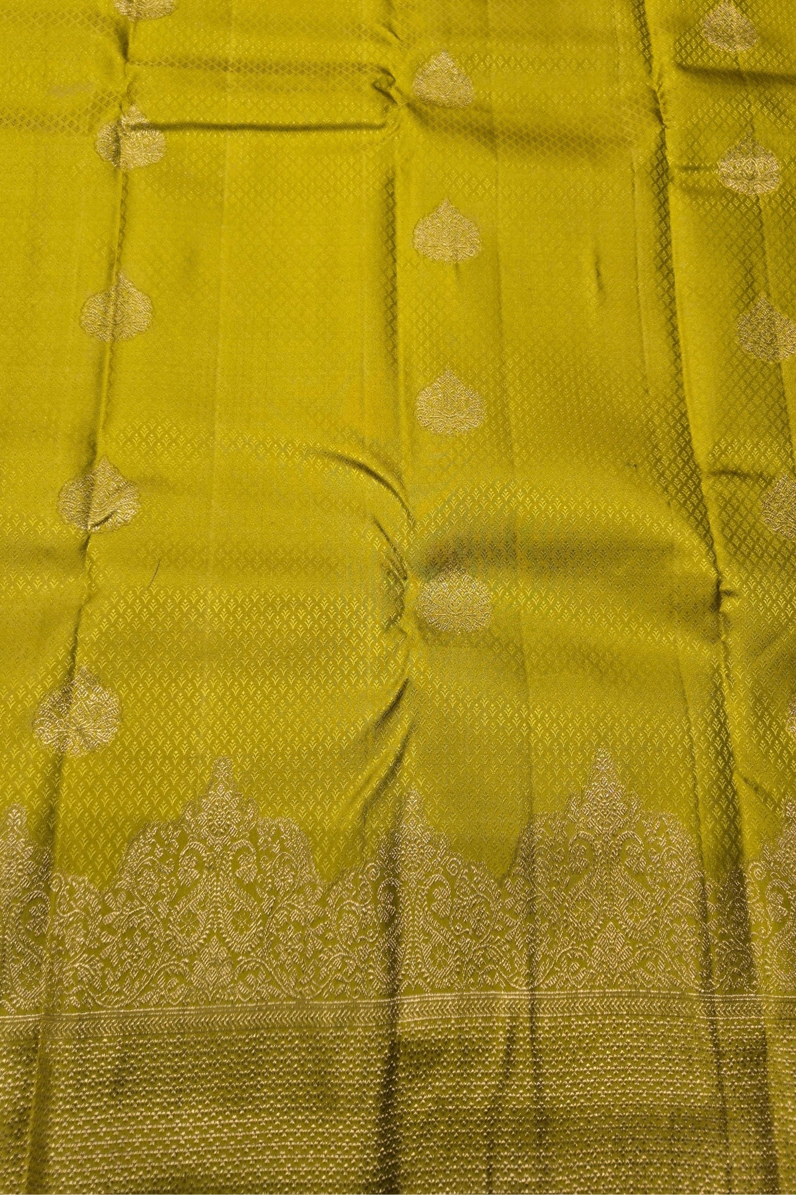 This Android Green Kanchipuram Silk Saree radiates freshness and vibrancy with its unique green tone paired with a luxurious gold zari border. The lively color adds a modern twist to traditional craftsmanship, making it perfect for festive occasions, temple visits, and cultural celebrations. Its smooth, lustrous silk fabric enhances the elegance of every drape.