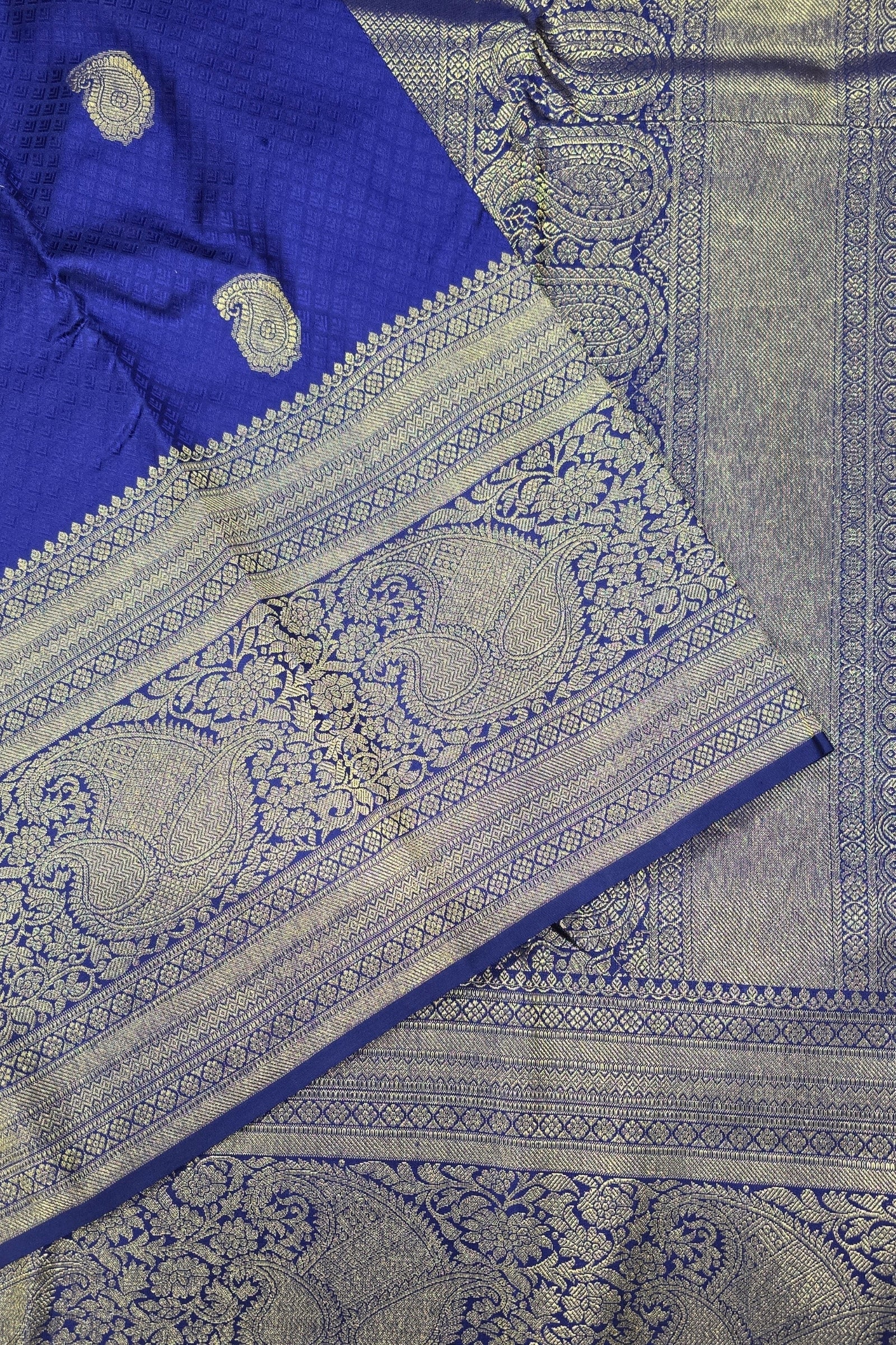 Blue Kanchipuram Silk Saree with Golden Pattern – Graceful & Festive