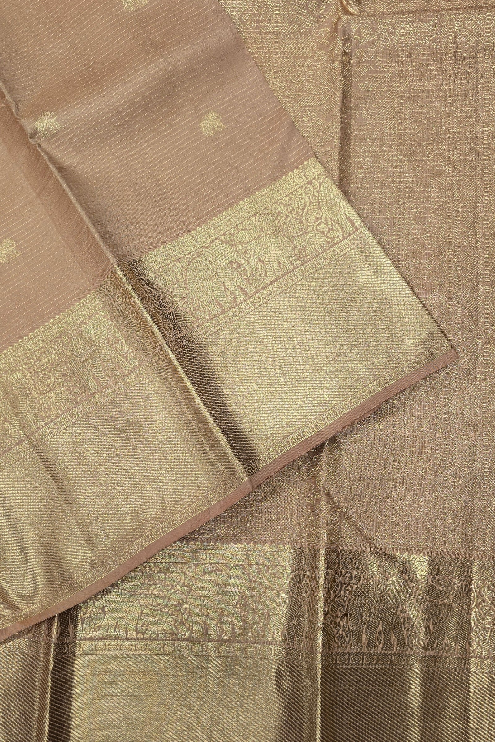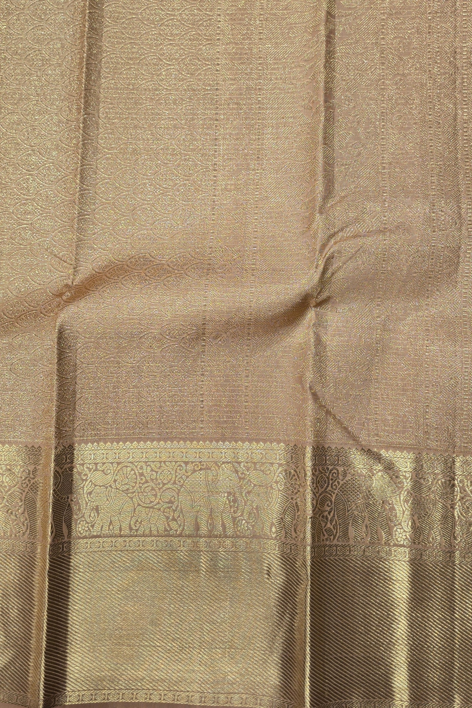 Brown Kanchipuram Silk Saree with Gold Border – Classic & Rich