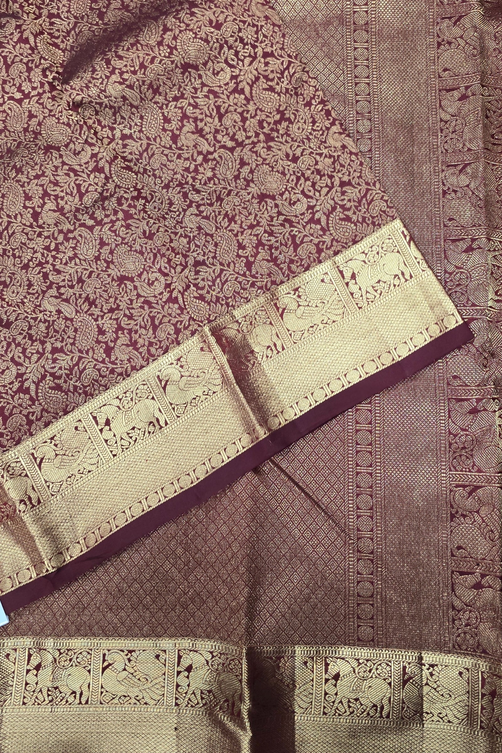 Brown Kanchipuram Silk Saree with Gold Floral Pattern – Rich & Traditional