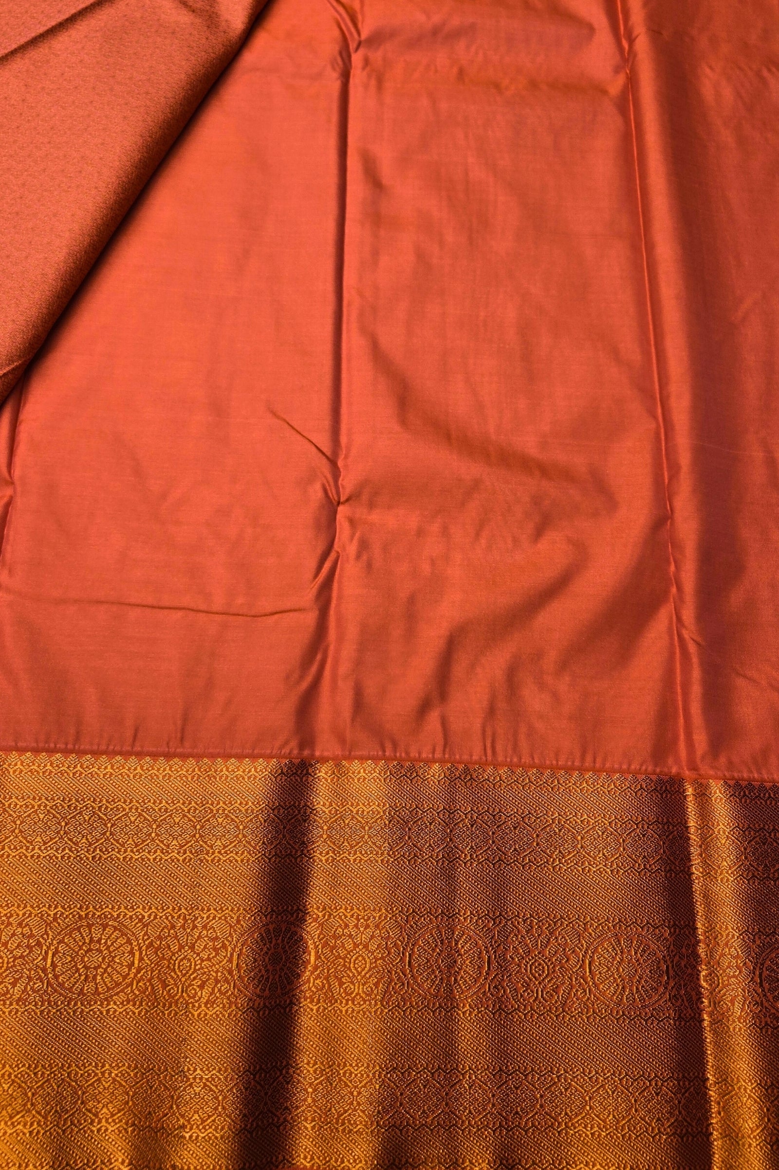 Radiate elegance and grace in this Light Green Semi Kanchi Silk Saree accentuated with a vibrant orange border. Crafted from a premium silk blend, this saree perfectly blends traditional weaving with a soft, lightweight drape. Ideal for festive occasions, temple visits, and family celebrations, it reflects timeless South Indian craftsmanship and beauty.