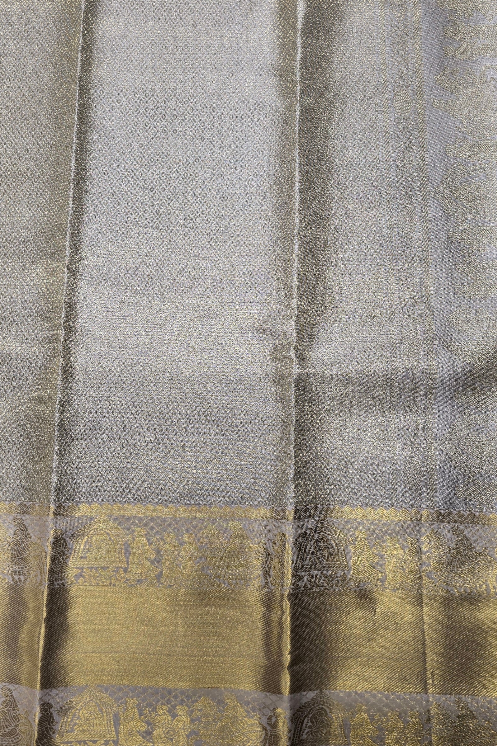 Gray Kanchipuram Silk Saree with Gold Border – Subtle & Regal