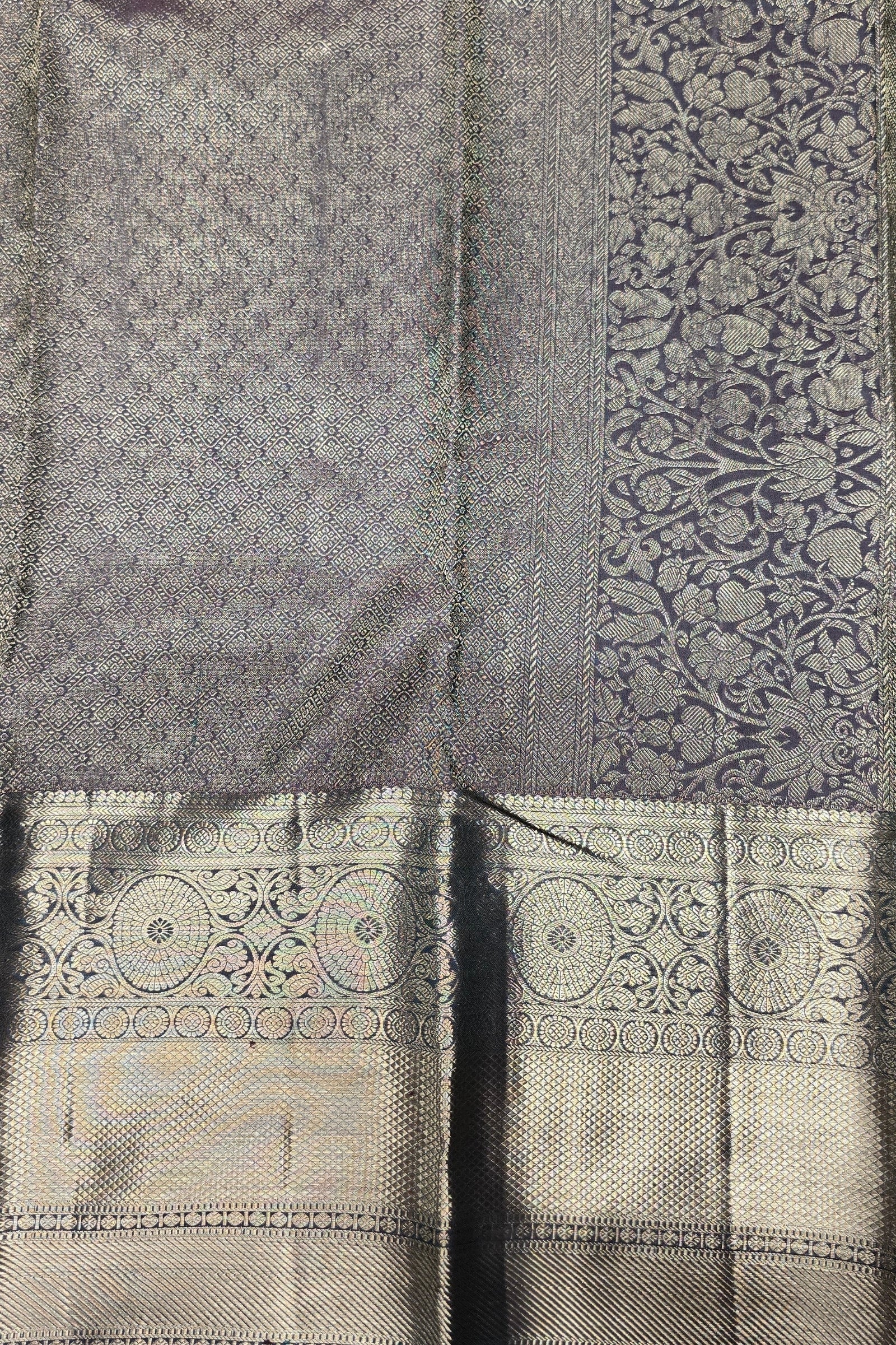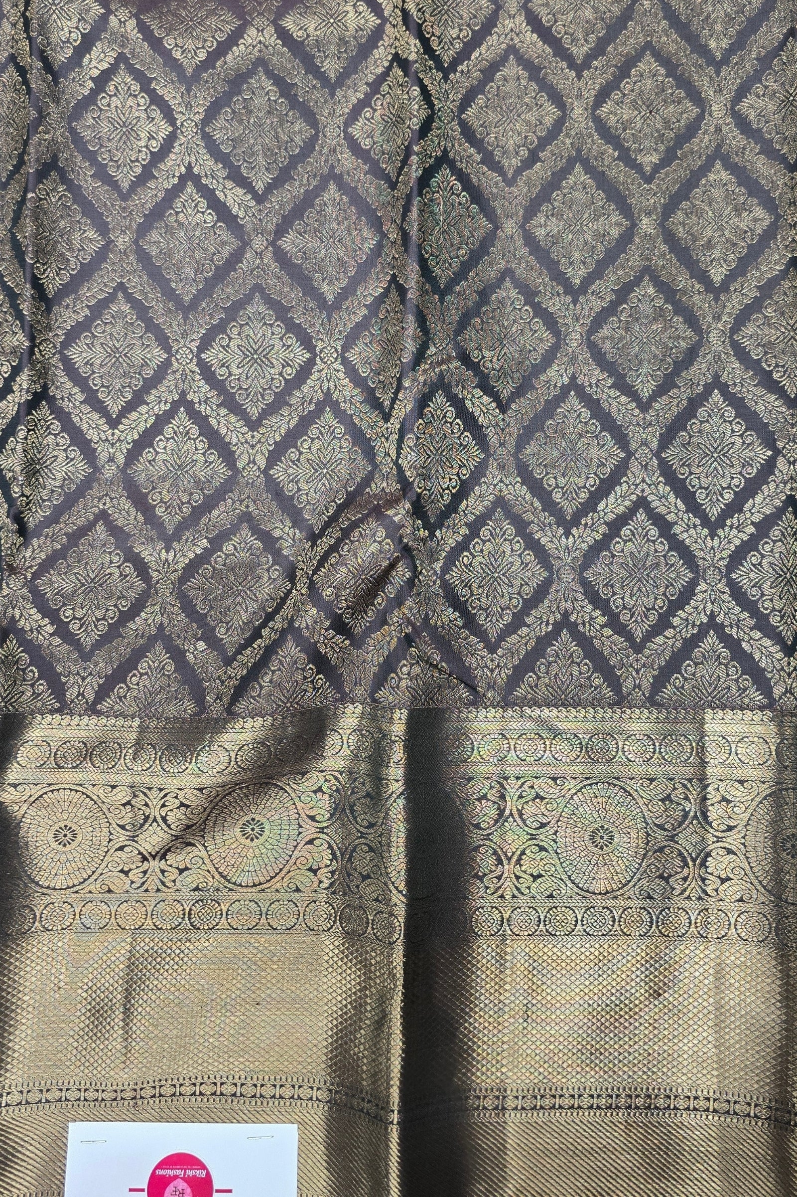 Grey & Black Zigzag Pattern Kanchipuram Silk Saree – Contemporary & Stylish