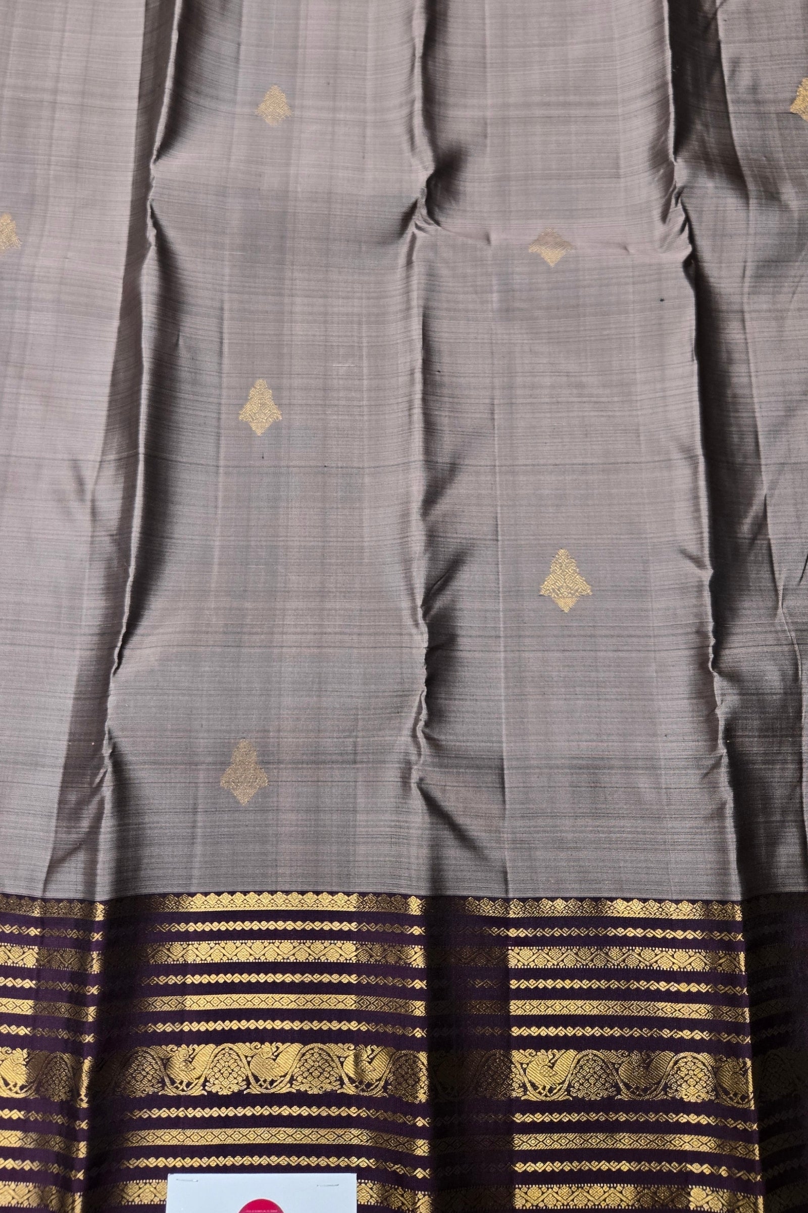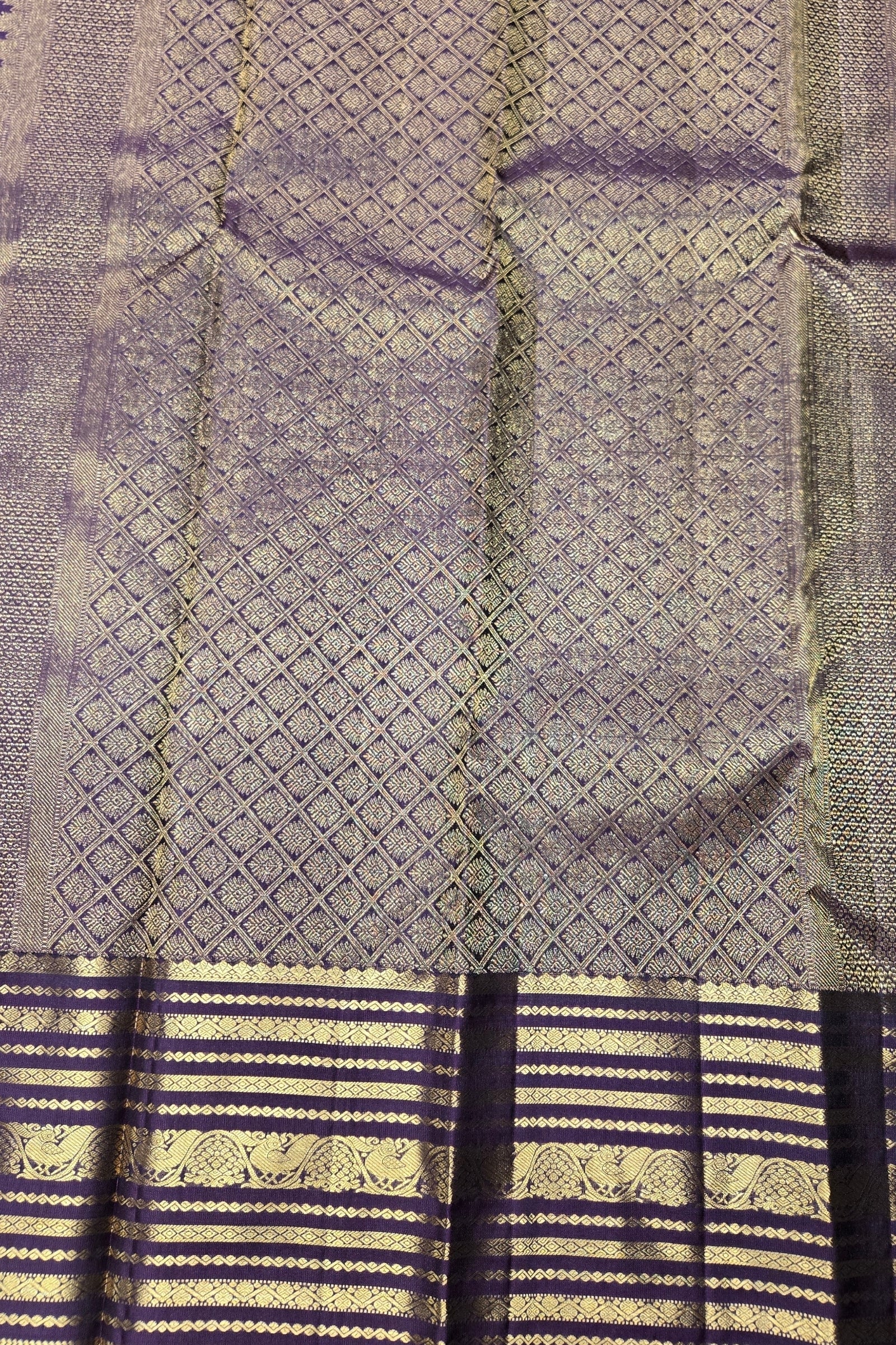 Grey Fabric with Gold and Purple Stripes Kanchipuram Silk Saree