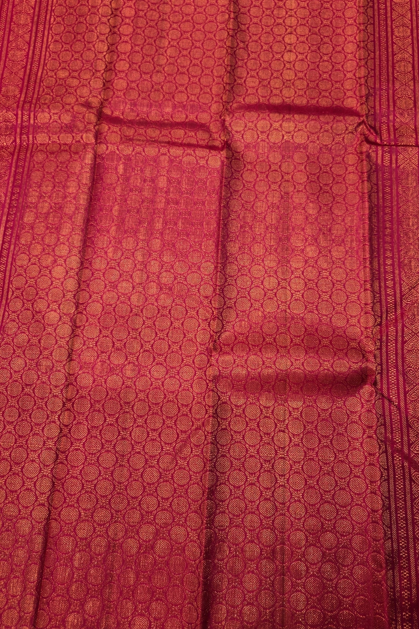 This Majestic Maroon Kanchipuram Silk Saree embodies timeless tradition with its deep maroon hue and rich handcrafted detailing. The luxurious silk fabric drapes beautifully, making it a perfect choice for weddings, festive celebrations, and cultural gatherings. Its classic color adds elegance while maintaining a regal charm.
