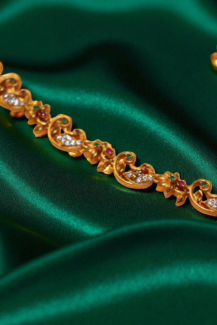 The Scarlet Elegance Necklace radiates timeless beauty with its dazzling red stones and intricate craftsmanship. Designed to accentuate your traditional attire, this piece adds a touch of regal charm and sophistication — perfect for festive occasions, weddings, and grand celebrations.