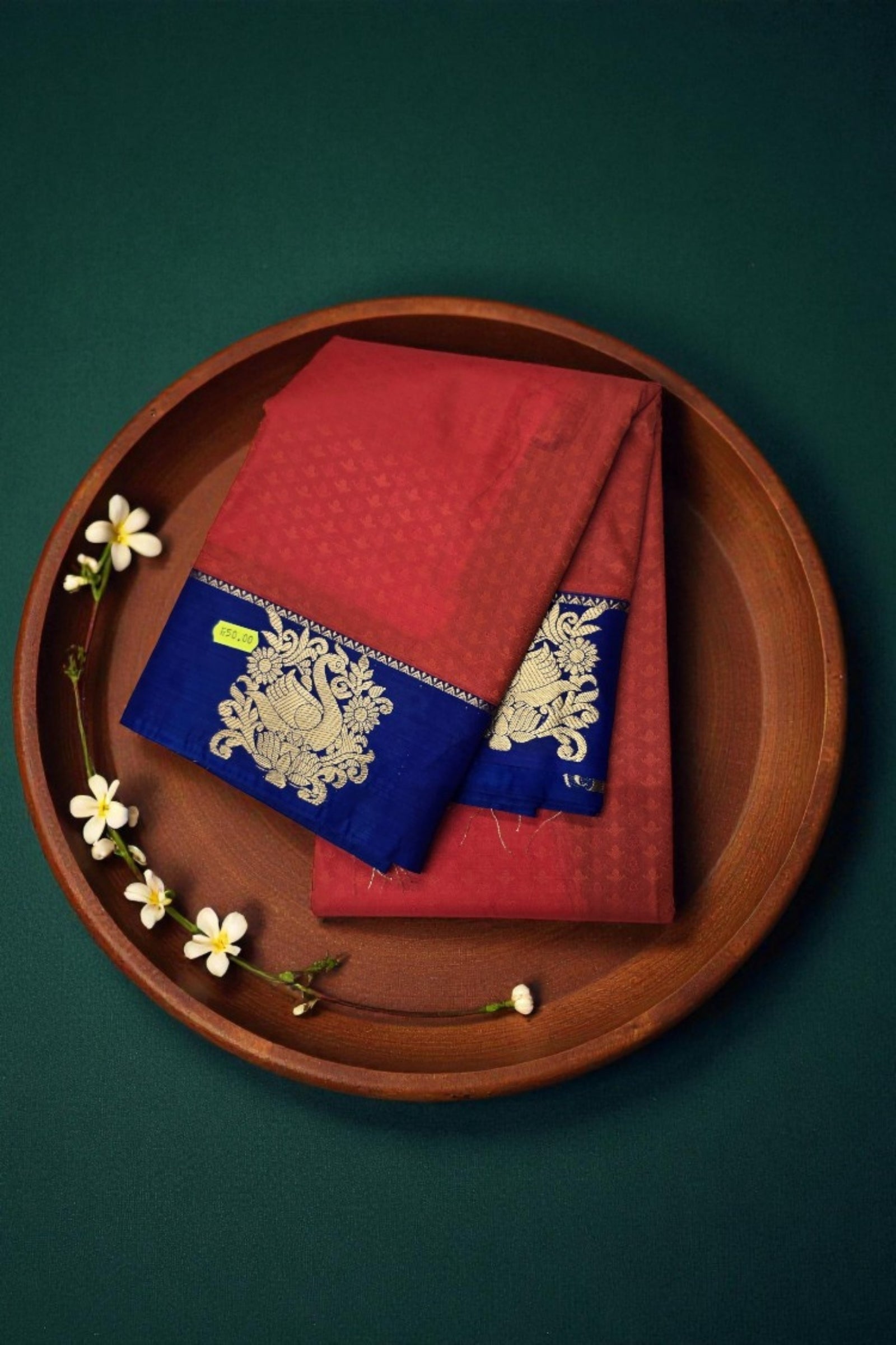 Make a bold and graceful statement with this Red Semi Silk Saree, beautifully enhanced by a striking blue border. Crafted from a fine semi silk fabric, it drapes effortlessly, combining traditional charm with a touch of modern contrast. The vivid red body symbolizes celebration and confidence, while the elegant blue border adds depth and sophistication. Perfect for weddings, festive occasions, and cultural gatherings, this saree captures the essence of timeless Indian elegance.